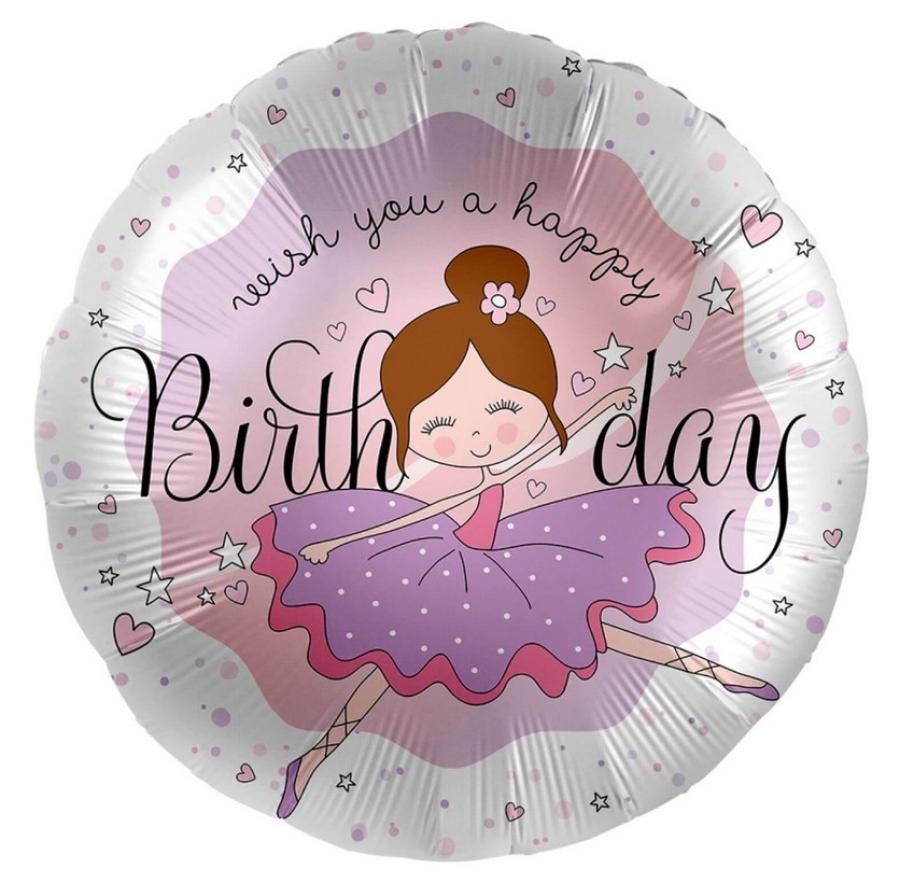 Palloncini mylar da 18 pollici con stampa "ballerina" con immagine presente sull'intera superficie del prodotto. Lo sfondo super colorato rende questo prodotto unico e particolare.