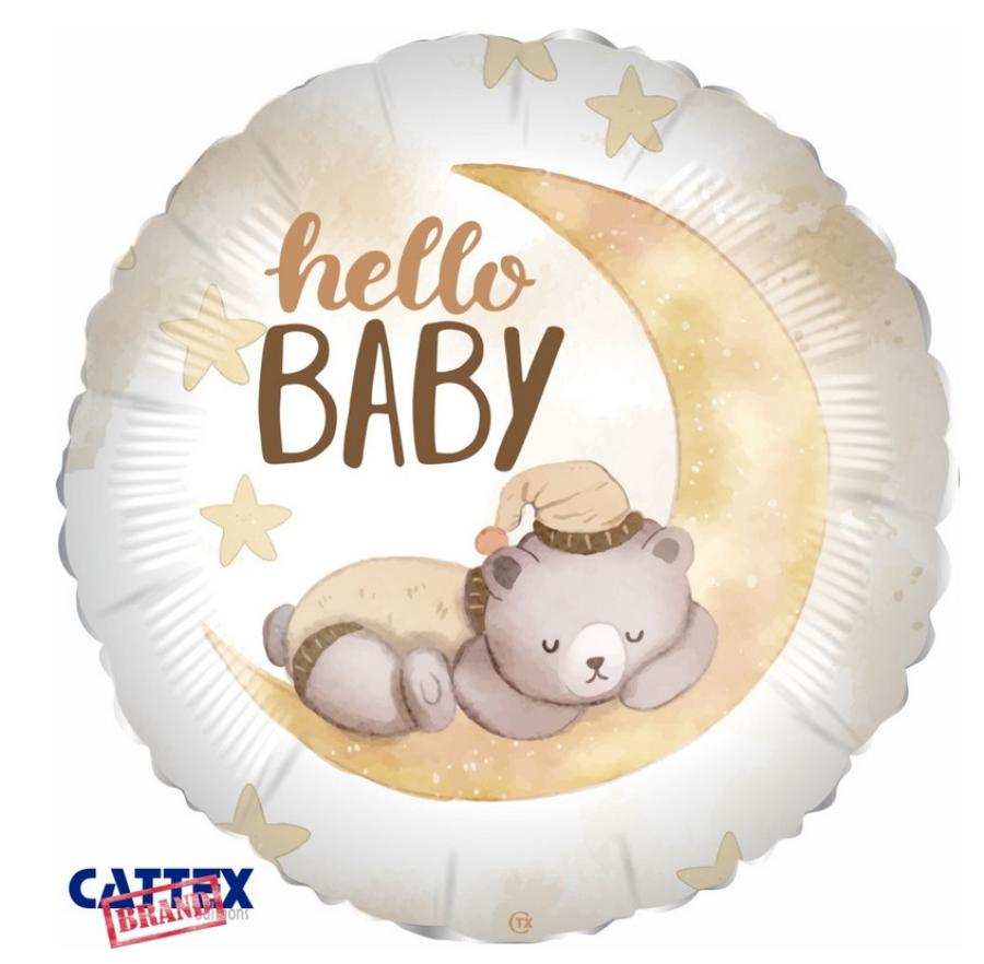 Pallone rotondo in mylar con stampa "HELLO BABY" con orsetto